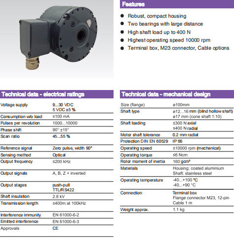 | ○ | 分辨率(脈沖數/轉):1000…10000 | ○ | 移相:90°±15° | |||