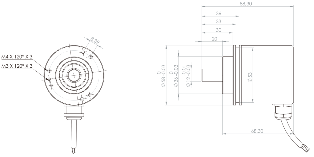 | ○ | 空載電流:≤ 60mA(24 VDC) | ○ | 分辨率(脈沖數/轉): 1... 65536 | |||